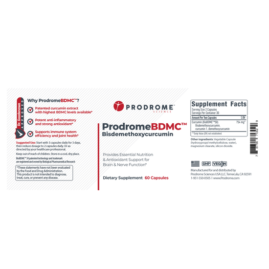 ProdromeBDMC™ is a patented curcuminoid supplement formulated to support antioxidant activity and a balanced immune response. Featuring advanced ingredient delivery, it's designed for individuals seeking to maintain wellness and joint comfort as part of a proactive health routine.